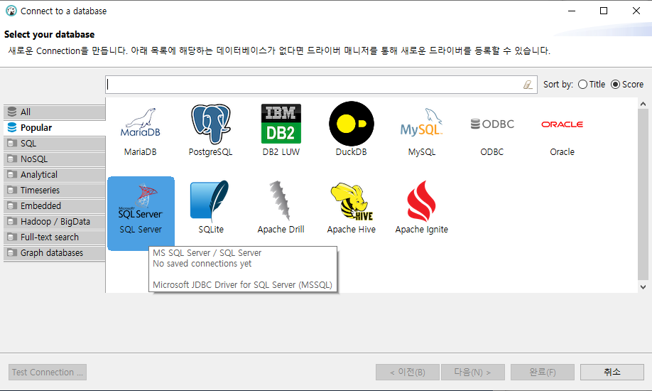 - MSSQL 을 사용하기 위해 Dbeaver에 연결해보겠습니다.