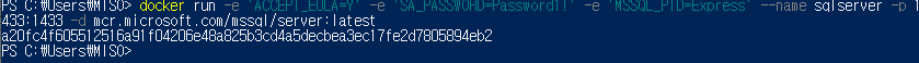 -d 는 위에서 설치한 MSSQL 이미지 입니다.