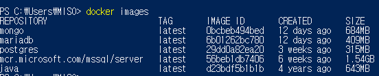 - 다운로드가 잘 되었는지 확인하기위해 docker images 를 입력해봅니다.