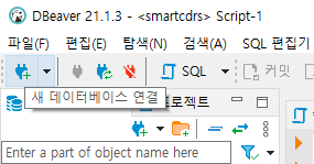 - Dbeaver 실행 후 왼쪽 상단에 있는 새 데이터베이스 연결을 클릭합니다.