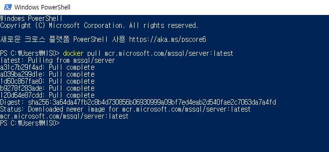 microsoft.com/mssql/server 가 잘 들어가있습니다.
