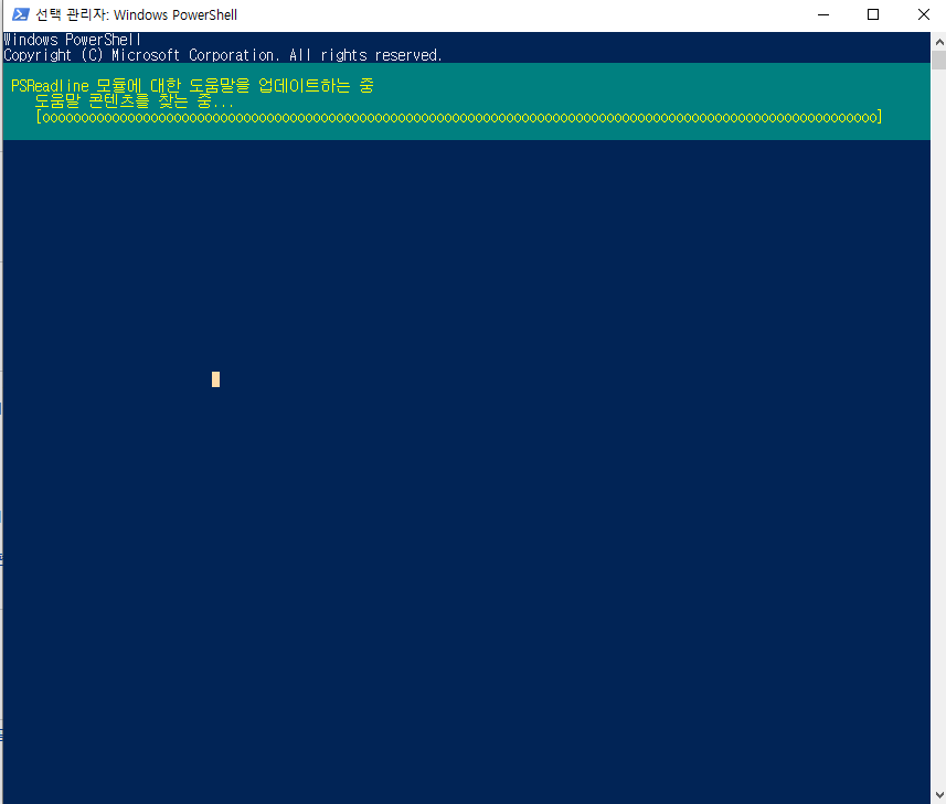 powershell을 관리자 권한으로 실행 한 다음 Update-Help를 입력하니까 아래와 같이 도움말을 업데이트하는 중이라고 나옵니다.