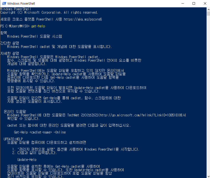 powershell에서 get-help를 치면 다양한 명령어 개수를 확인할 수 있습니다.