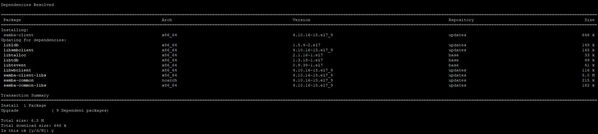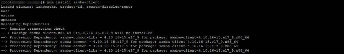 2. yum install samba-client을 입력하여 설치를 진행합니다.