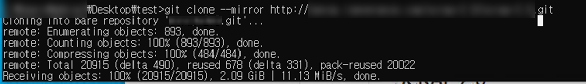 3. 해당 경로로 이동 후 git clone --mirror CloneUrl을 입력해줍니다.