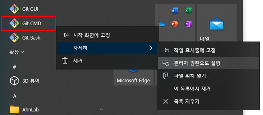 1. 먼저 Git CMD 를 관리자 권한으로 실행합니다.