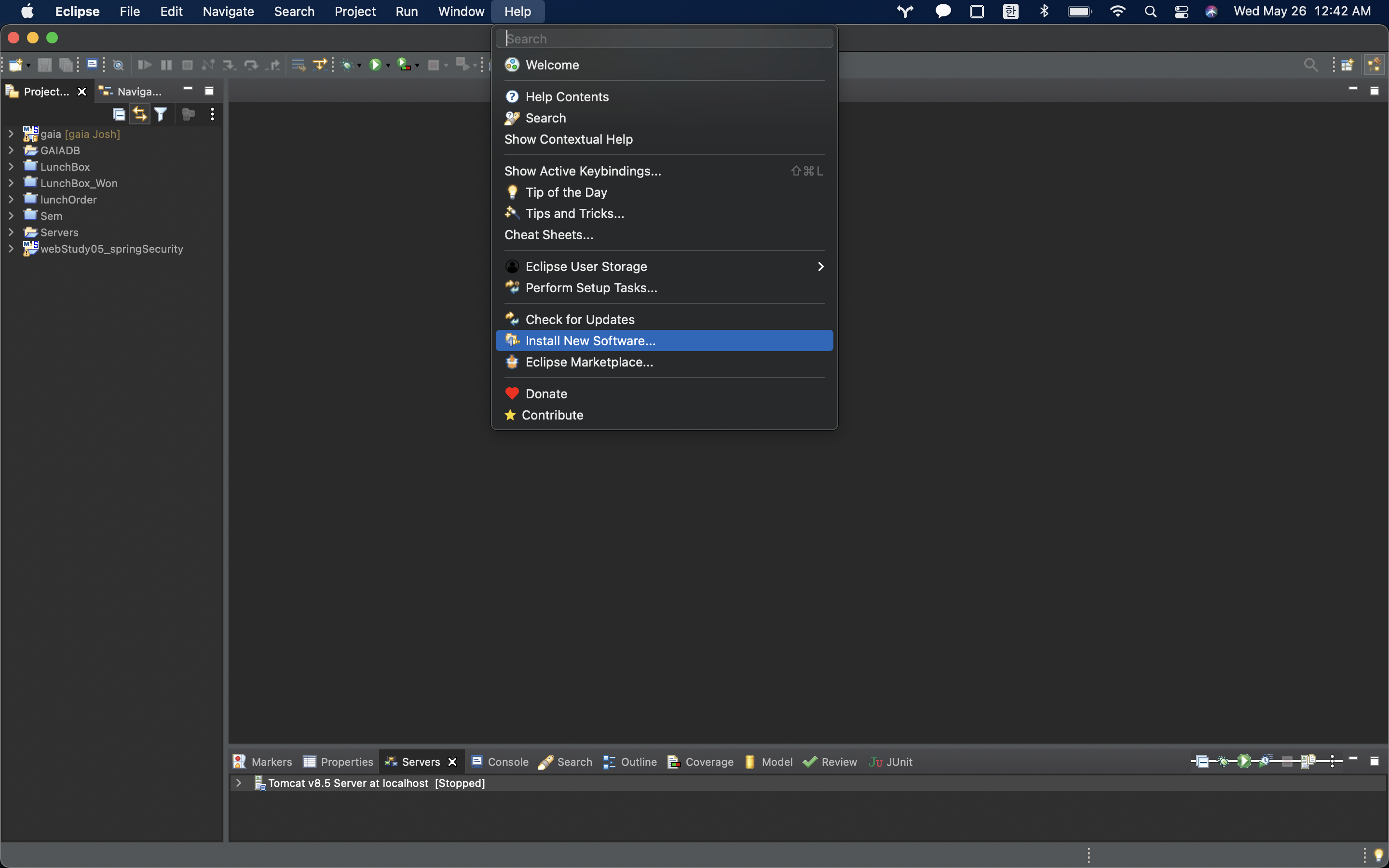 Help > Install New Software 를 클릭한다.