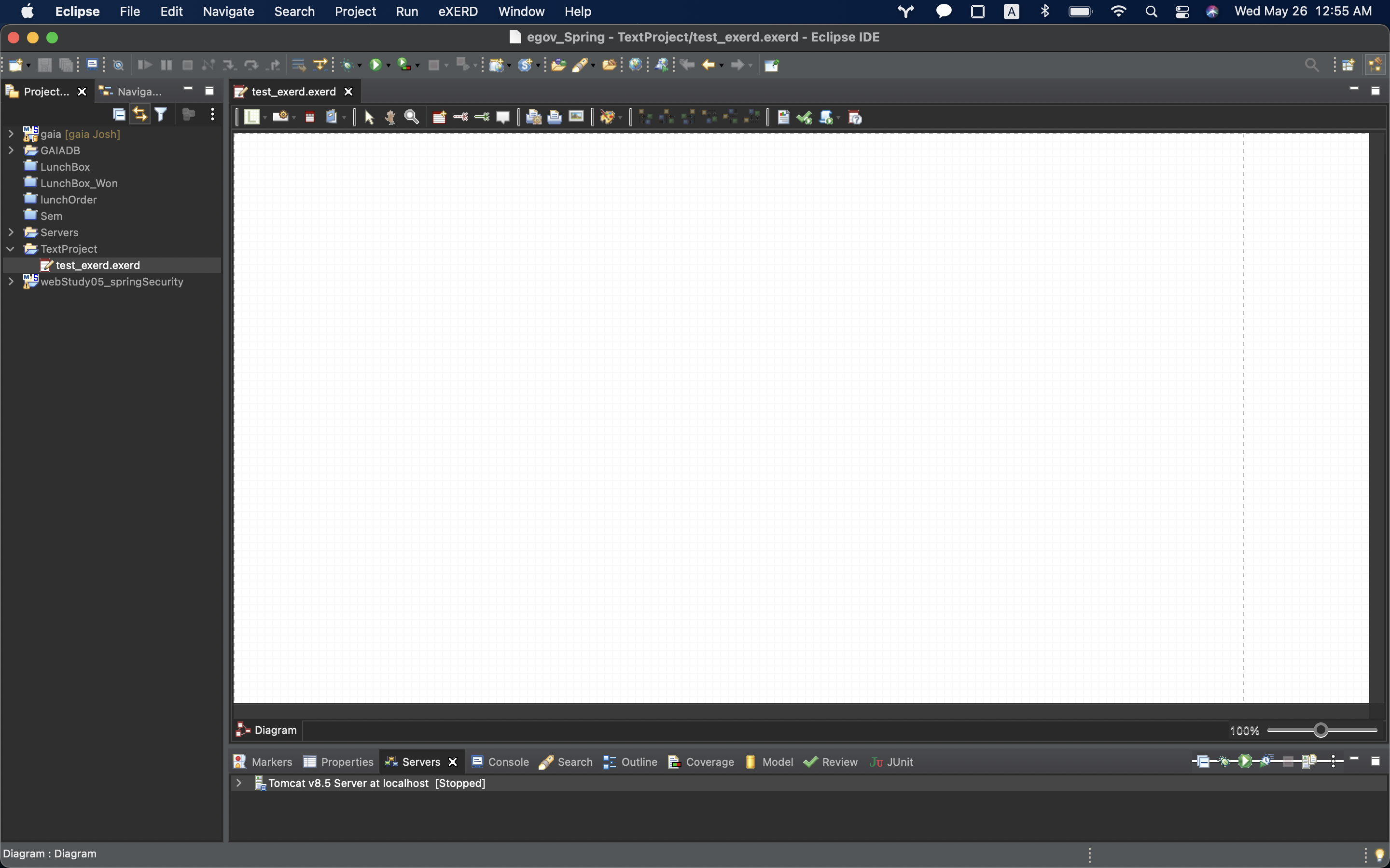 새로운 프로젝트TextProject(TestProject 로 하려고했는데 오타)에 test_exerd.exerd 파일을 생성했다.