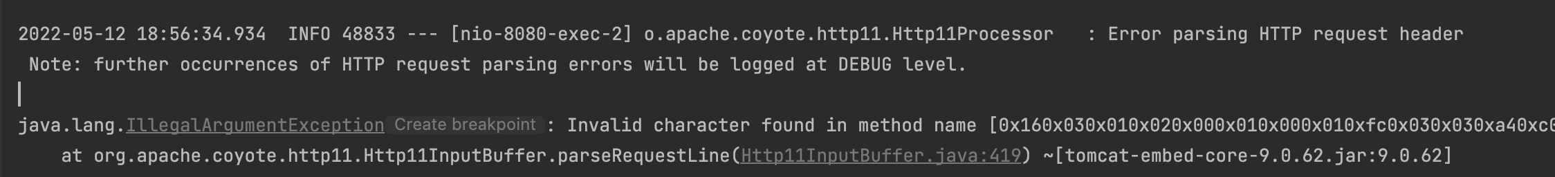 java.lang.IllegalArgumentException: Invalid character found in method name