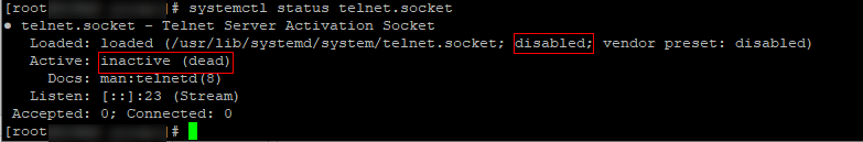 systemctl status telnet.socket명령어를 입력합니다.